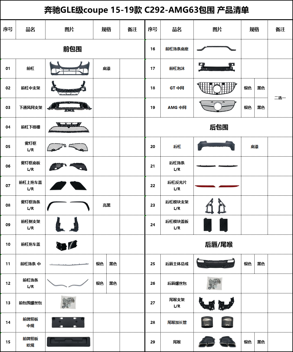 BZ-C292-AMG63产品清单