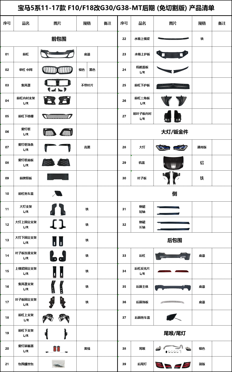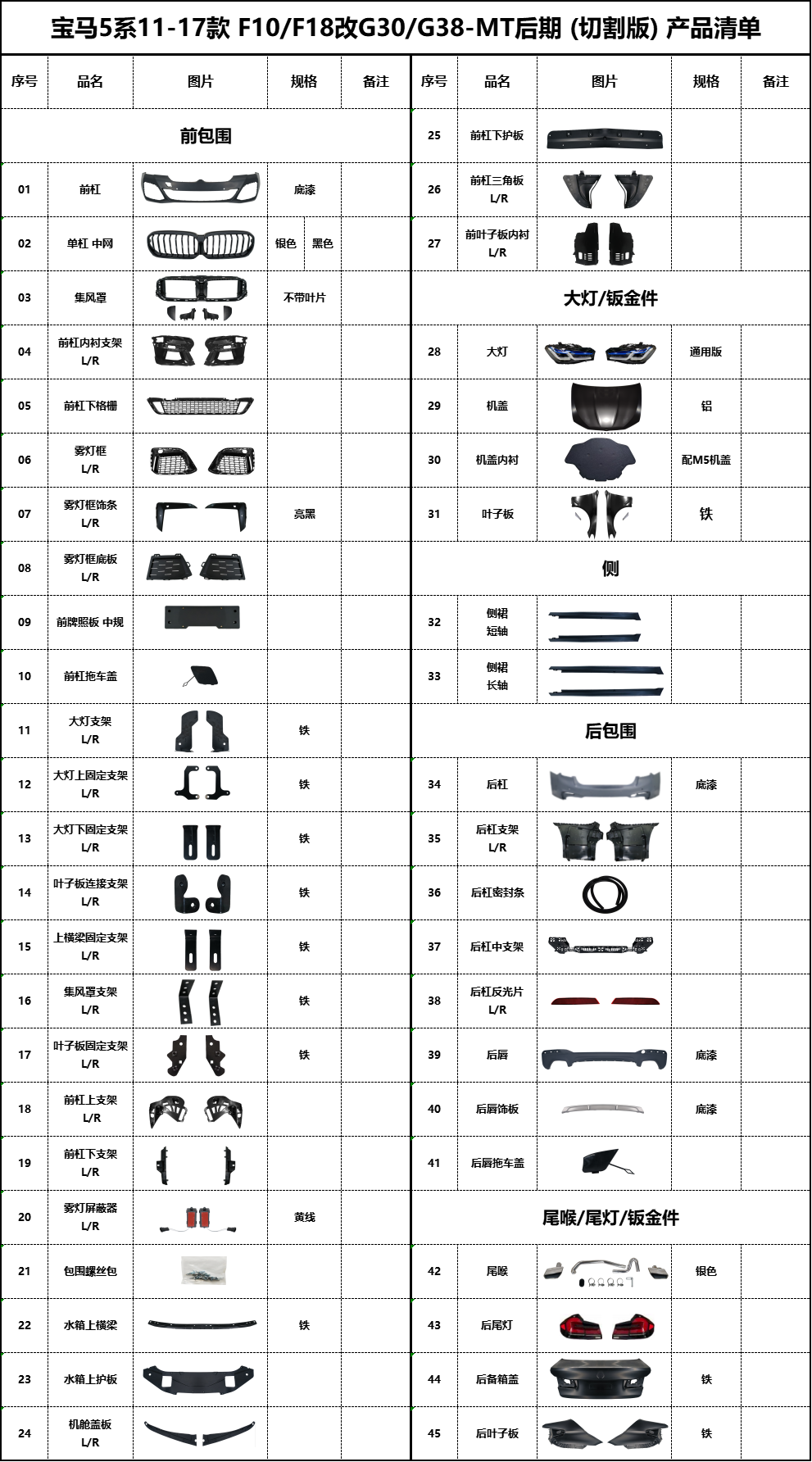 BM-F10改G30-MT后期(免切割)产品清单