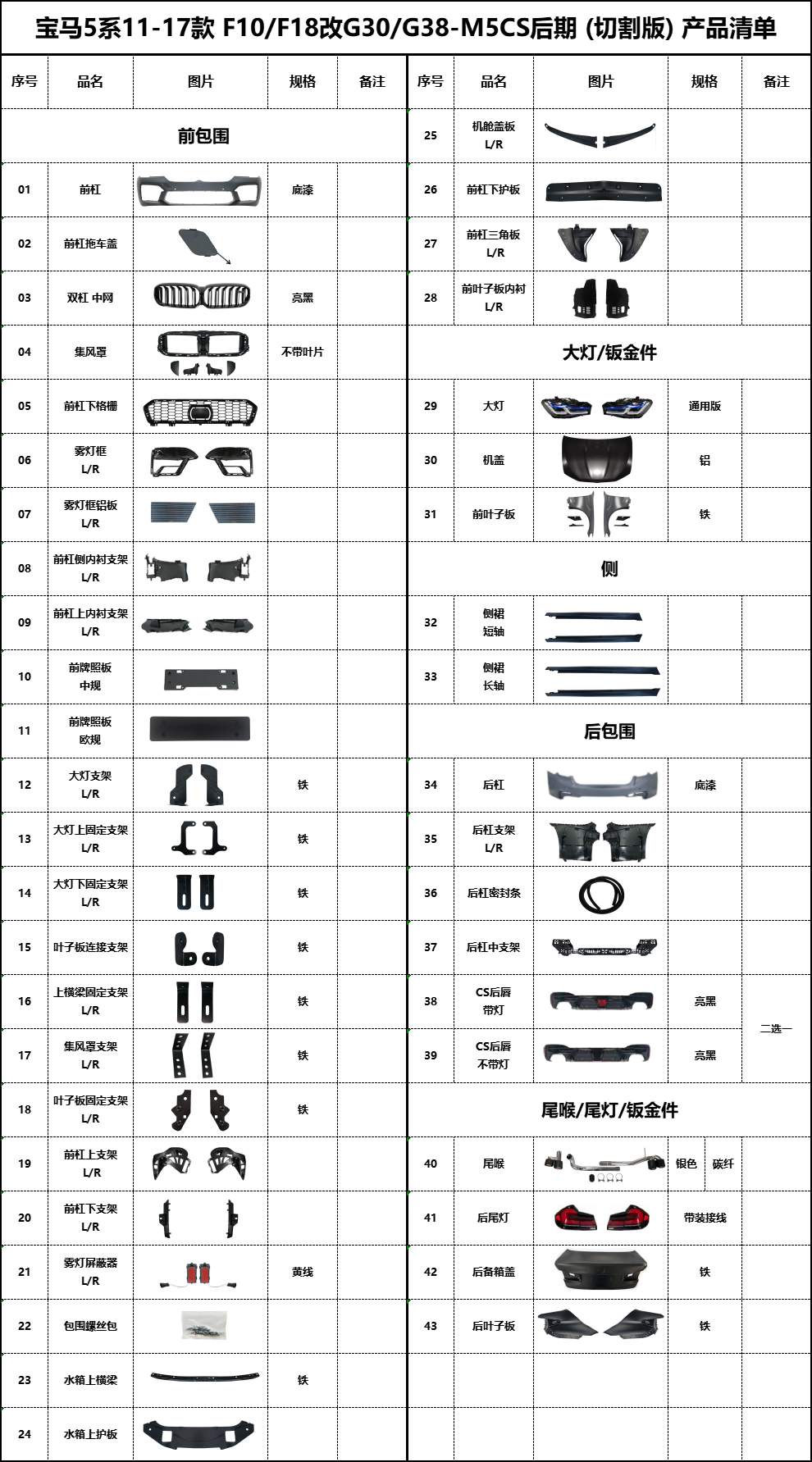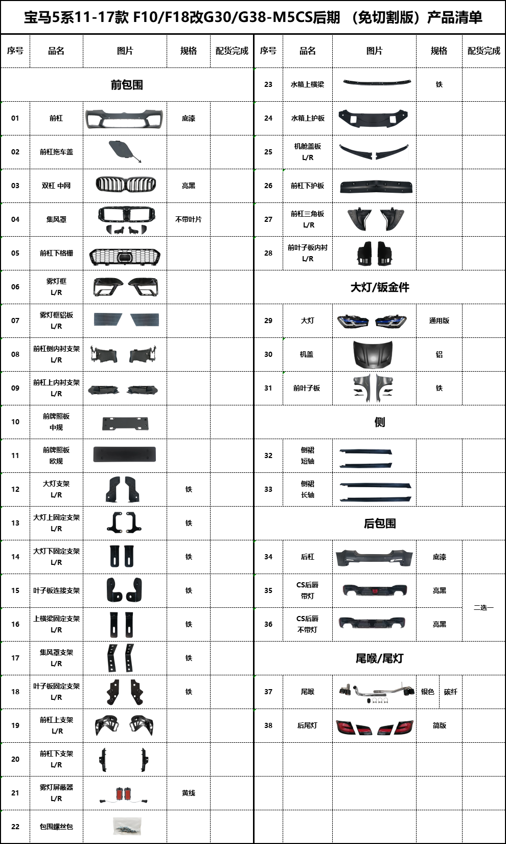 BM-F10改G30-CS后期(切割版)产品清单