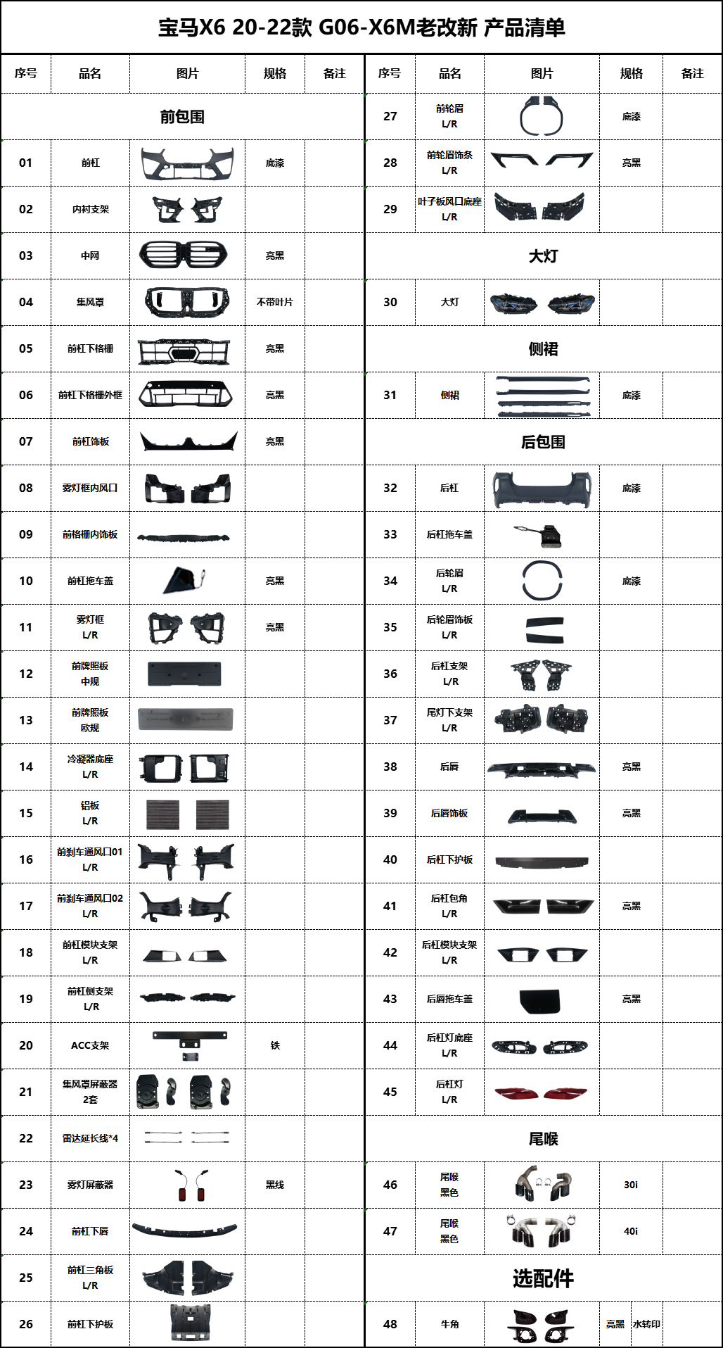 BM-G06老改新X6M产品清单