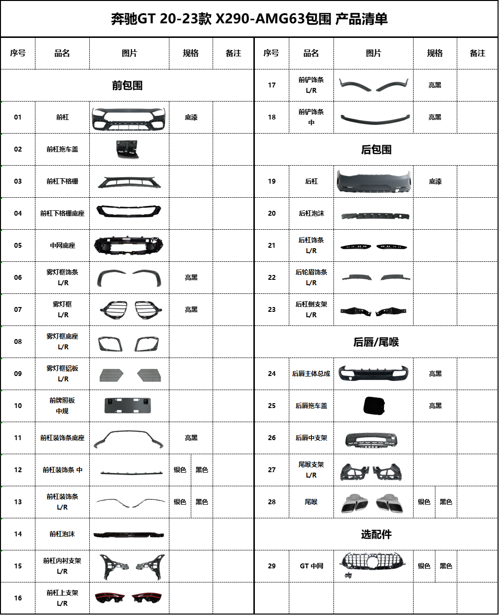 BZ-X290-AMG63产品清单