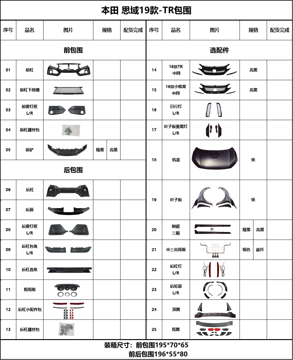 TR包围-产品清单